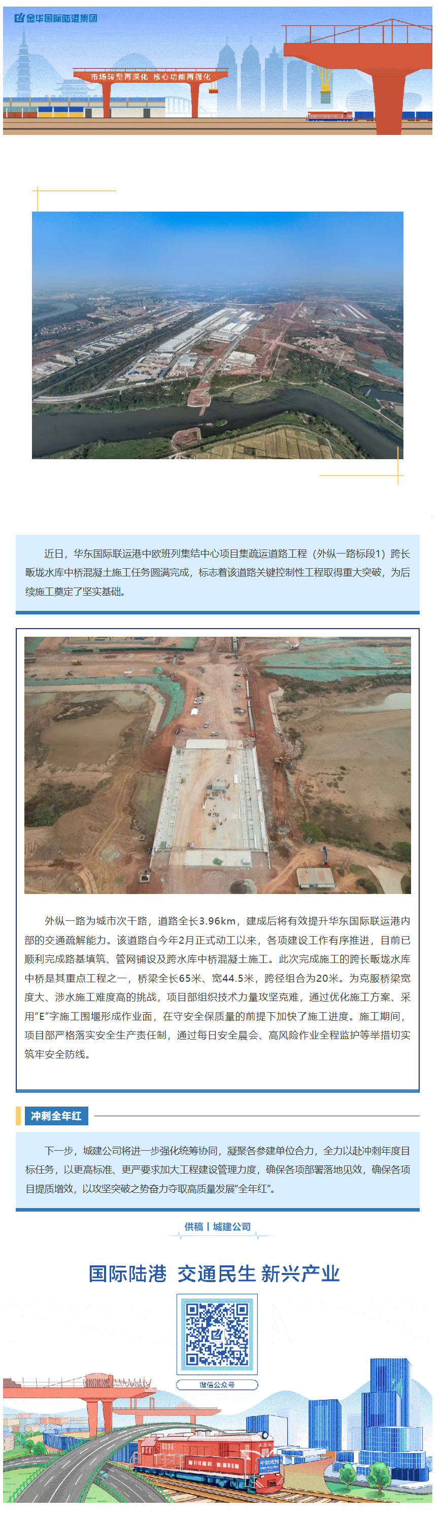 外縱一路標(biāo)段1跨水庫橋梁板施工完成